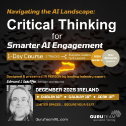 Edmund Sutcliffe, designer and presenter of GuruTeam’s Critical Thinking with AI course returns to Ireland in December to present a course for tech leaders/managers and one for non-tech leaders/managers.